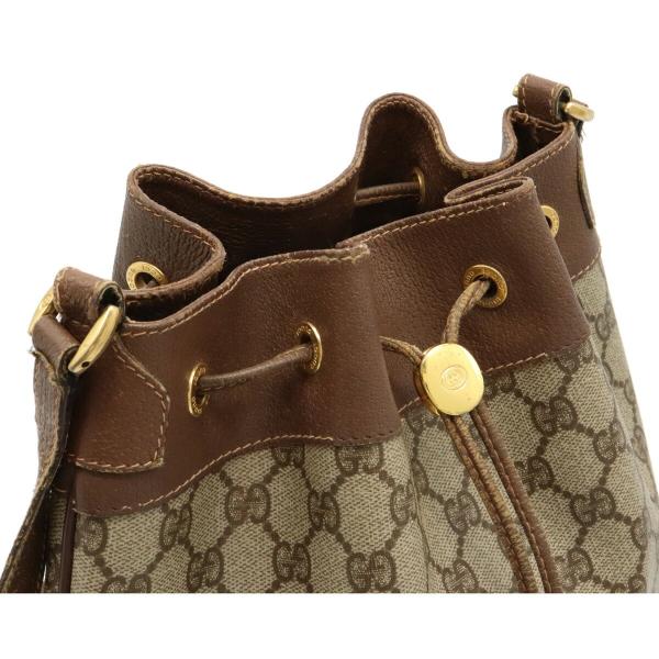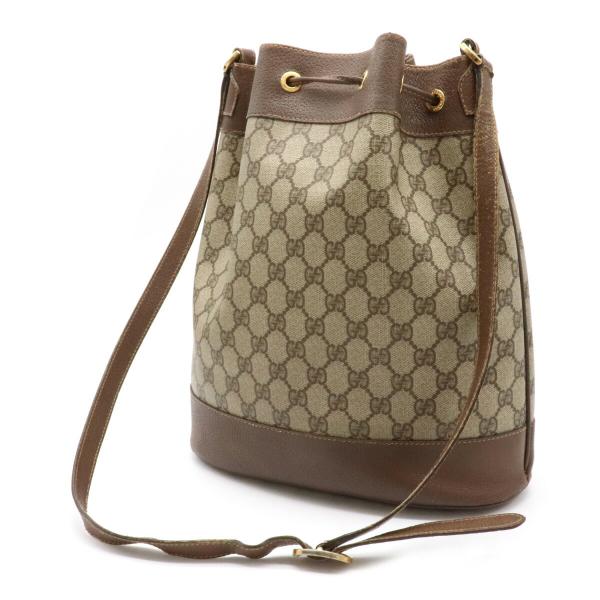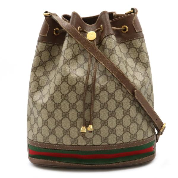 GUCCI グッチ オールドグッチ GGプラス シェリーライン 巾着バッグ ショルダーバッグ PVC レザー ベージュ ブラウン 164.02.085 (中古)好評につき延長!