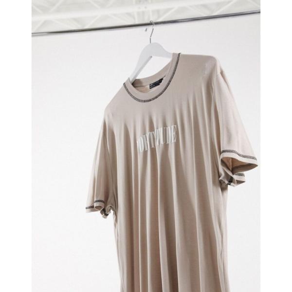 エイソス ASOS DESIGN メンズ Tシャツ ロング トップス super longline relaxed t-shirt with central chest text print in washed viscose