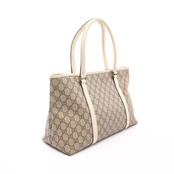 グッチ GUCCI GGスプリーム ハンドバッグ トートバッグ PVC レザー ブラウン アイボリー 114595 レディース 中古
