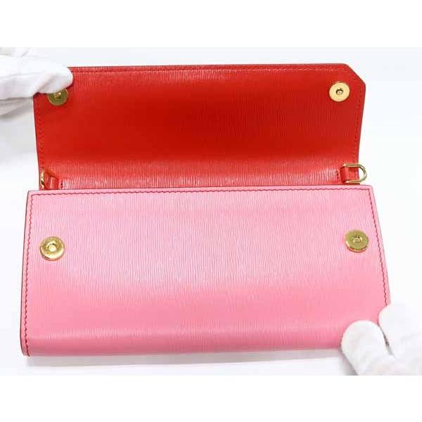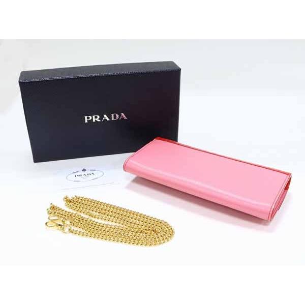 プラダ ヴィッテロムーブ チェーンウォレット カーフ ピンク レッド アウトレット品 1DH002 長財布(小銭入れなし)史上最も激安