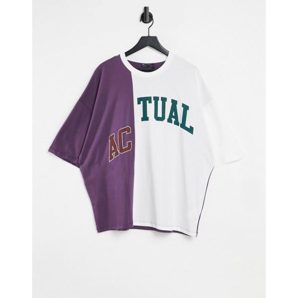 エイソス ASOS Actual メンズ Tシャツ トップス Asos Actual Oversized T-Shirt With Cut And Sew And Logo Detail グレー【当店人気★送料無料】