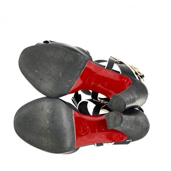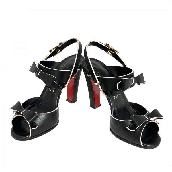 クリスチャンルブタン サンダル 35 レディース - 黒 リボン/アウトソール張替済 レザー 新着 20211019