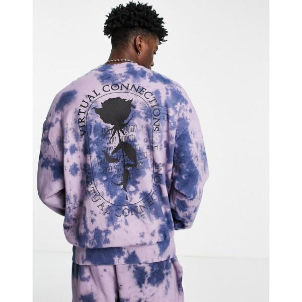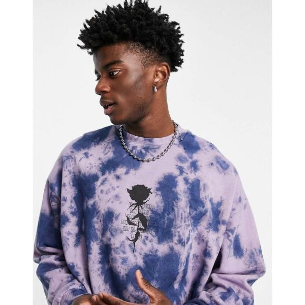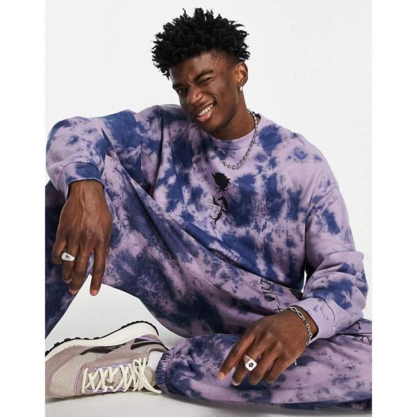 エイソス ASOS DESIGN メンズ スウェット・トレーナー トップス co-ord oversized sweatshirt in purple tie dye with rose print パープル