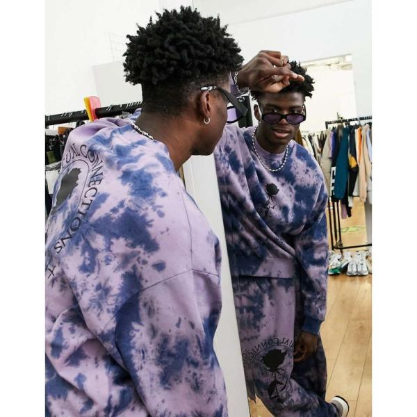 エイソス ASOS DESIGN メンズ スウェット・トレーナー トップス co-ord oversized sweatshirt in purple tie dye with rose print パープル【チャンピオン】