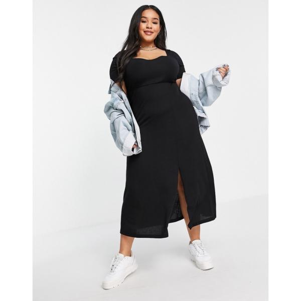 エイソス ASOS DESIGN レディース ワンピース マキシ丈 ワンピース・ドレス Curve sweetheart neck ribbed maxi dress in black ブラック