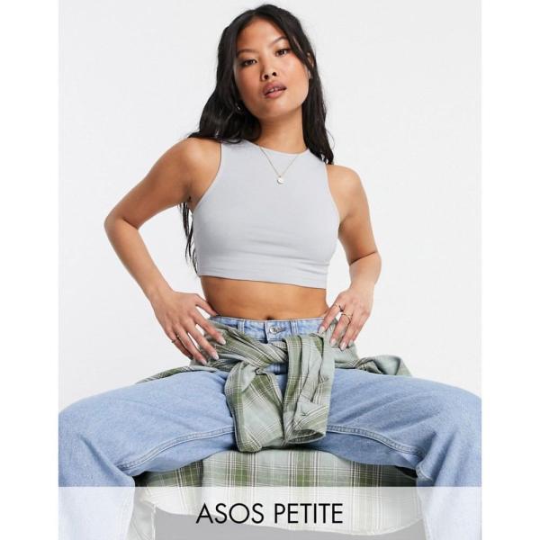 エイソス ASOS Petite レディース ベアトップ・チューブトップ・クロップド トップス ASOS DESIGN Petite high neck super crop vest in sage セージ