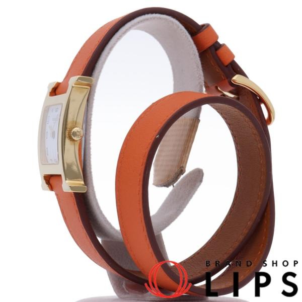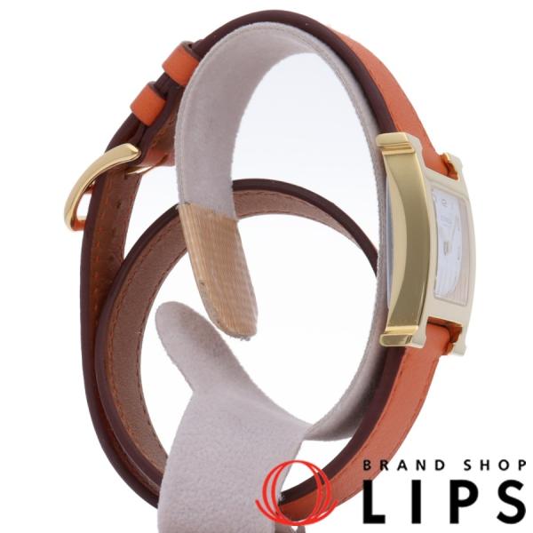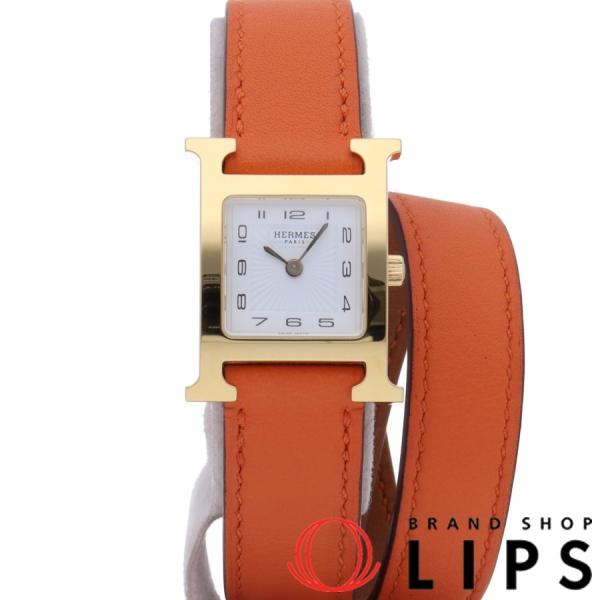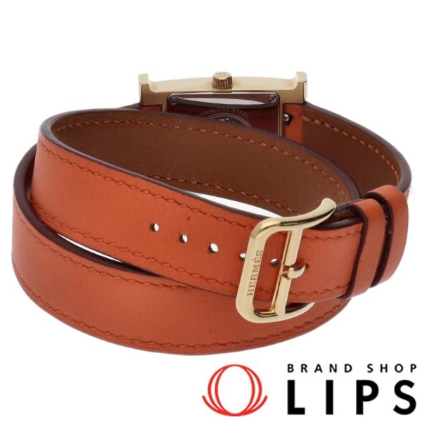 エルメス Hウォッチ ドゥブルトゥールレディース時計 HH1.201 GP\/革 白文字盤 美品2021新発