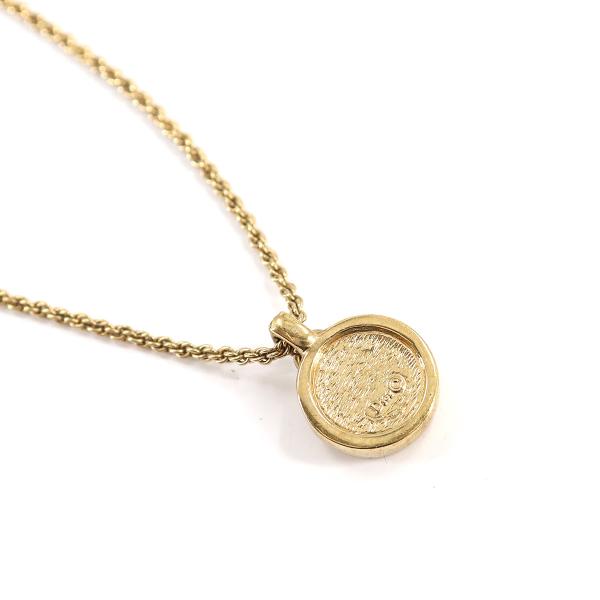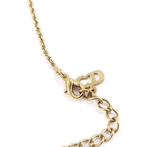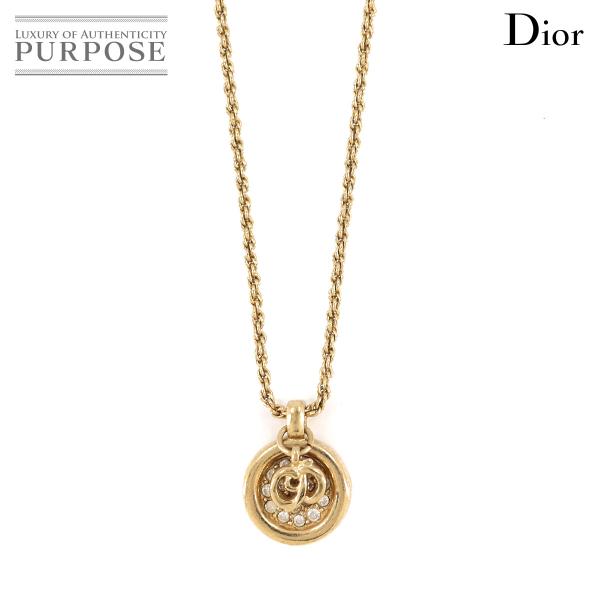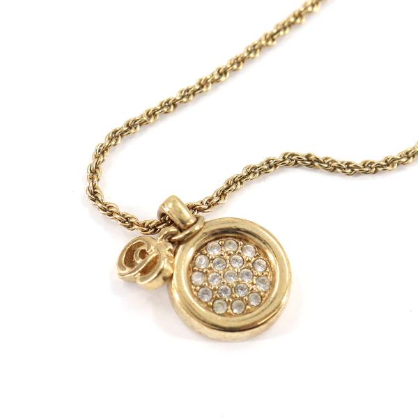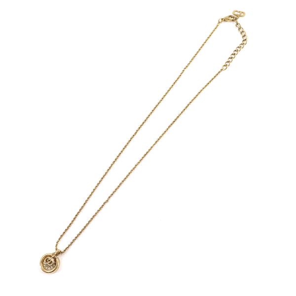 クリスチャン ディオール Christian Dior ラインストーン ラウンド ロゴ ネックレス ゴールド アクセサリー