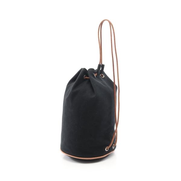 エルメス HERMES ポロションミミル ショルダーバッグ キャンバス レザー ブラック ブラウン ユニセックス 中古