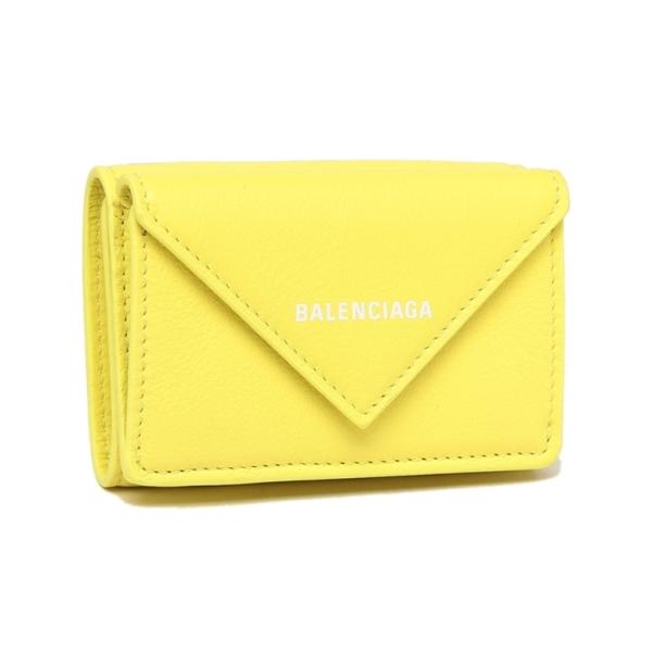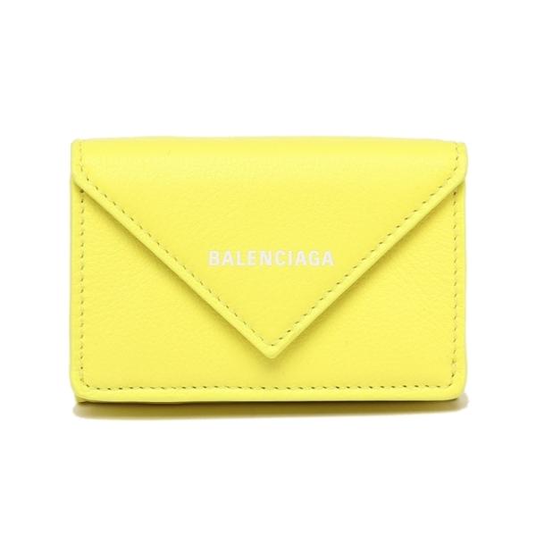 バレンシアガ 三つ折り財布 ペーパー ロゴ ミニ財布 イエロー レディース BALENCIAGA 391446 18D3N 7495