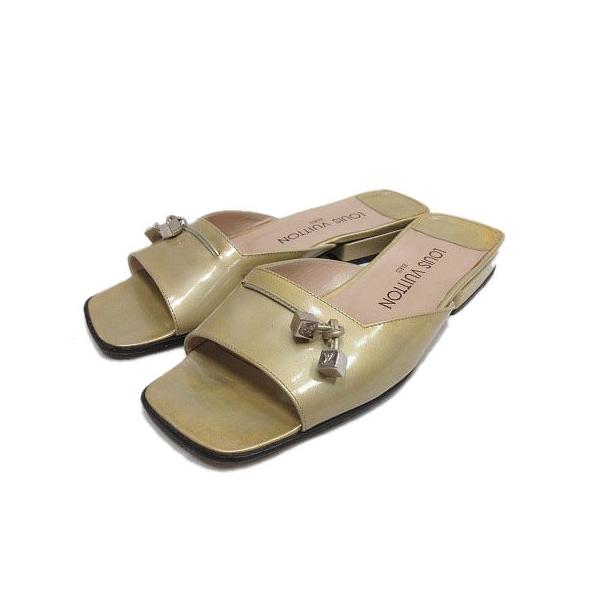 【中古】ルイヴィトン LOUIS VUITTON サンダル ミュール エナメル スクエアトゥ シューズ 35 1\/2 黄色 イエロー\/☆L69YBA7☆AA★ レディース 【ベクトル 古着】新着商品
