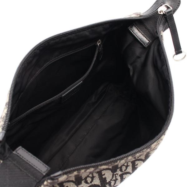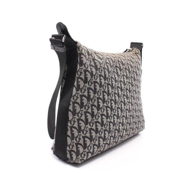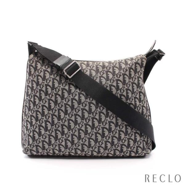 クリスチャンディオール Christian Dior トロッター ショルダーバッグ キャンバス レザー ライトグレー ブラック レディース 中古開店祝い