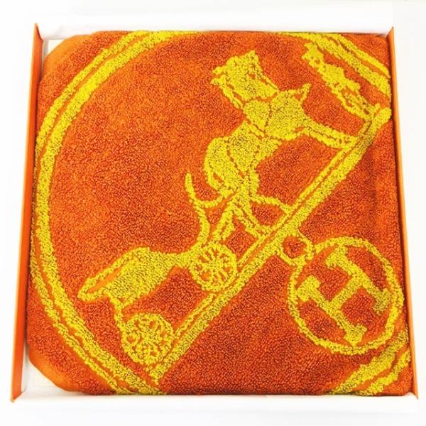 【中古】未使用品 エルメス HERMES シルク混 ハンドタオル オレンジ系 メンズ レディース 【ベクトル 古着】【期間限定送料無料】