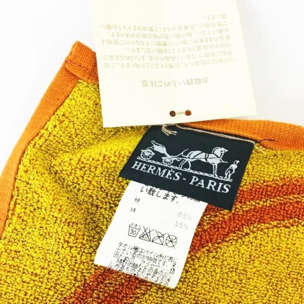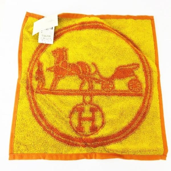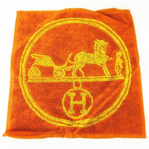 【中古】未使用品 エルメス HERMES シルク混 ハンドタオル オレンジ系 メンズ レディース 【ベクトル 古着】