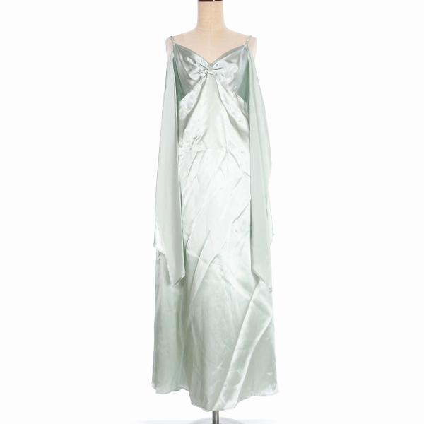【中古】未使用品 エムエムシックス MM6 メゾンマルジェラ 19AW 再構築 キャミソール ワンピース ノースリーブ ドレス ロング丈 ギャザー 36 ミントグリーン