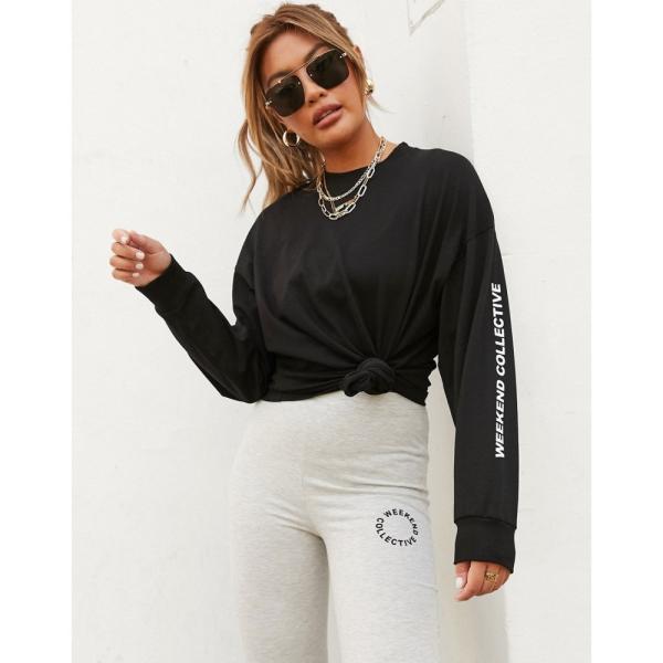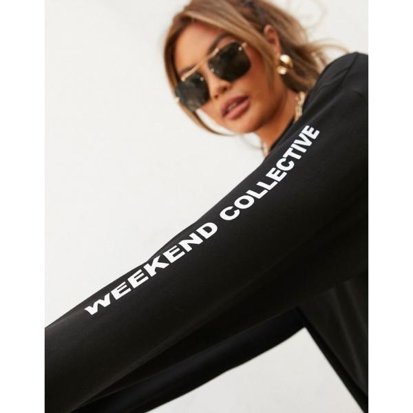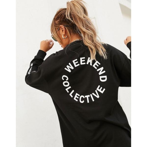 エイソス ASOS Weekend Collective レディース 長袖Tシャツ トップス Oversized Longsleeve T-Shirt With Back Logo In Black ブラック