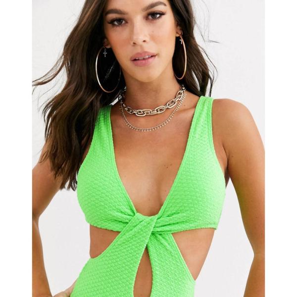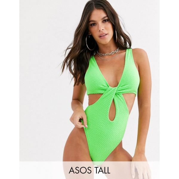 エイソス ASOS Tall レディース ワンピース 水着・ビーチウェア ASOS DESIGN tall textured cross waist swimsuit in neon green ネオングリーン大人気