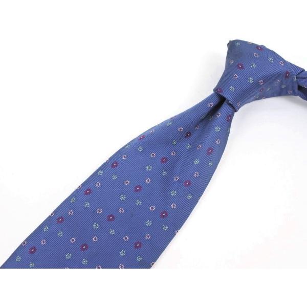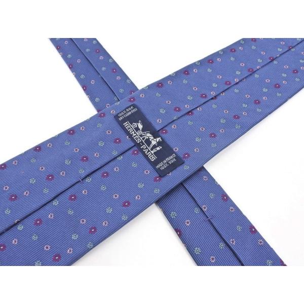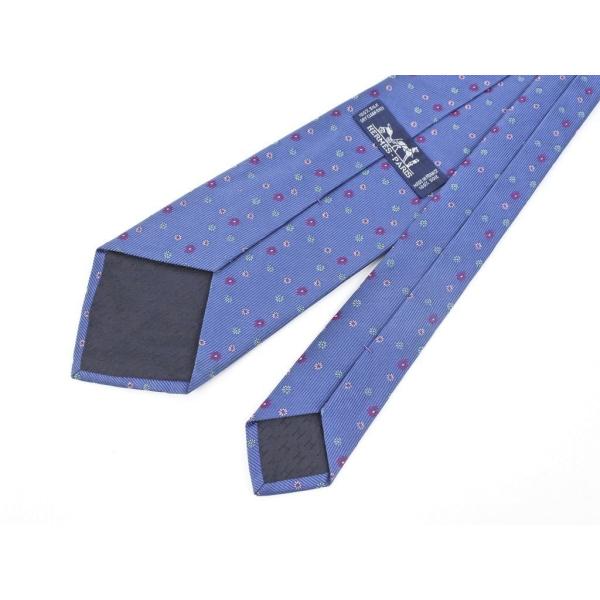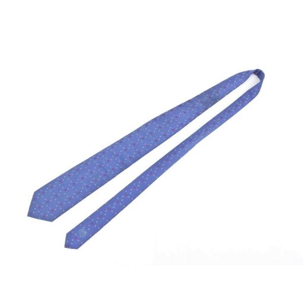 エルメス HERMES 小紋柄 3つ折り シルクネクタイ ダークブルー×ピンク×ミント
