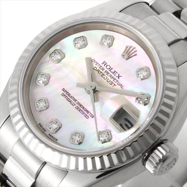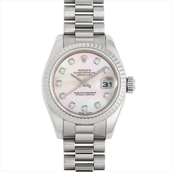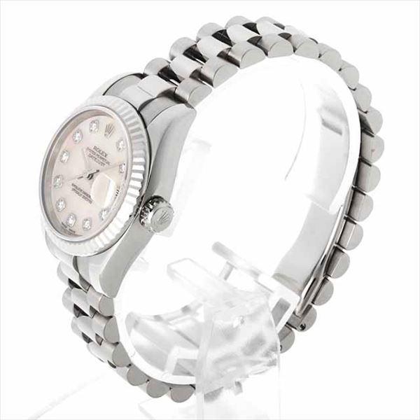 60回払いまで無金利 ロレックス デイトジャスト 10Pダイヤ 179179NG ピンクシェル Y番 中古 レディース 腕時計