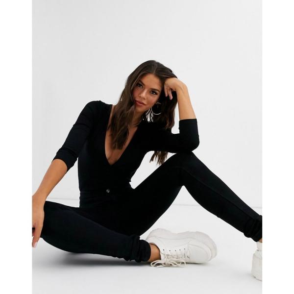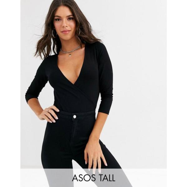 エイソス ASOS Tall レディース ボディースーツ インナー・下着 asos design tall bodysuit with wrap front in black ブラック