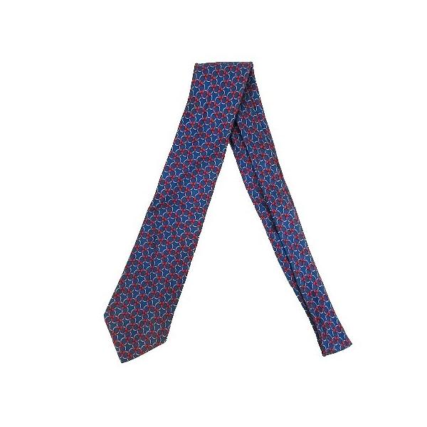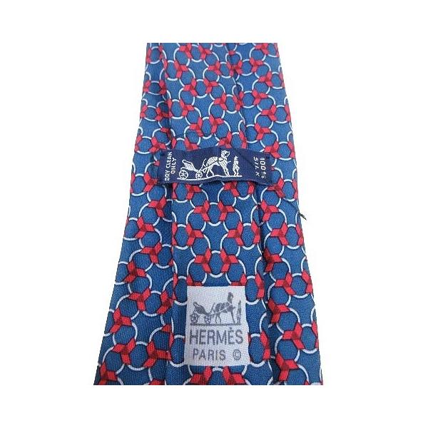 【中古】エルメス HERMES ネクタイ リング サークル 総柄 シルク100% ロゴ レギュラータイ 紺 ネイビー 7085 OA\/6 メンズ ■10 【ベクトル 古着】【2021新作】