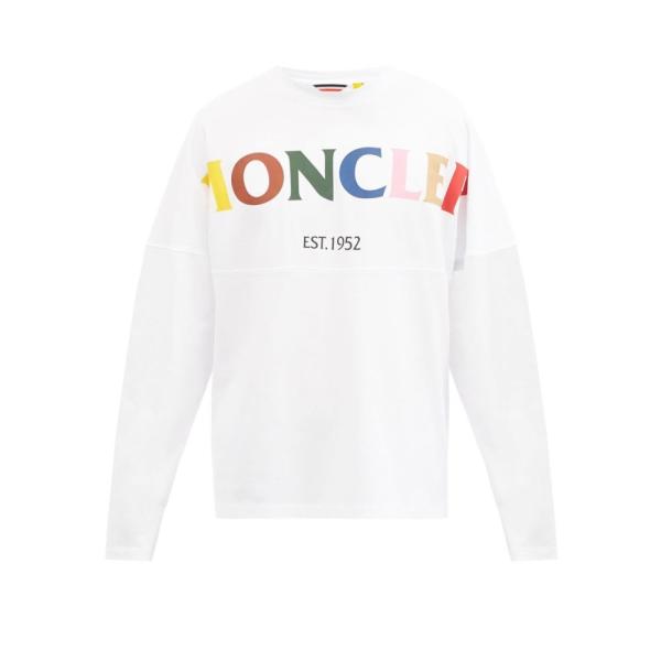 モンクレール Moncler Genius メンズ 長袖Tシャツ トップス Logo-print cotton-jersey long-sleeved T-shirt White2021新作モデル