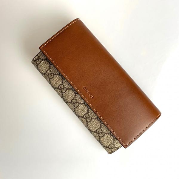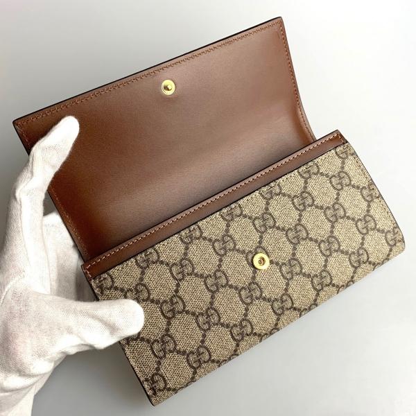 グッチ GUCCI 財布 長財布 ブラウン ベージュ エボニー ゴールド GGスプリーム キャンバス レザー 本革