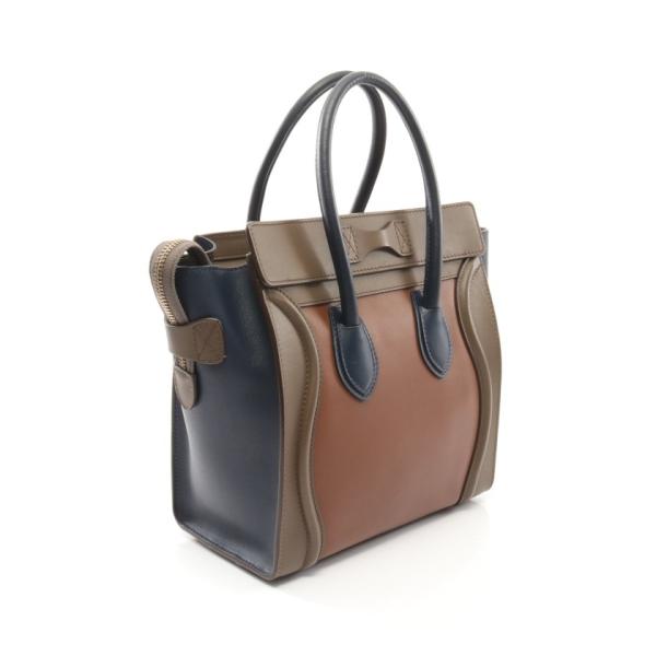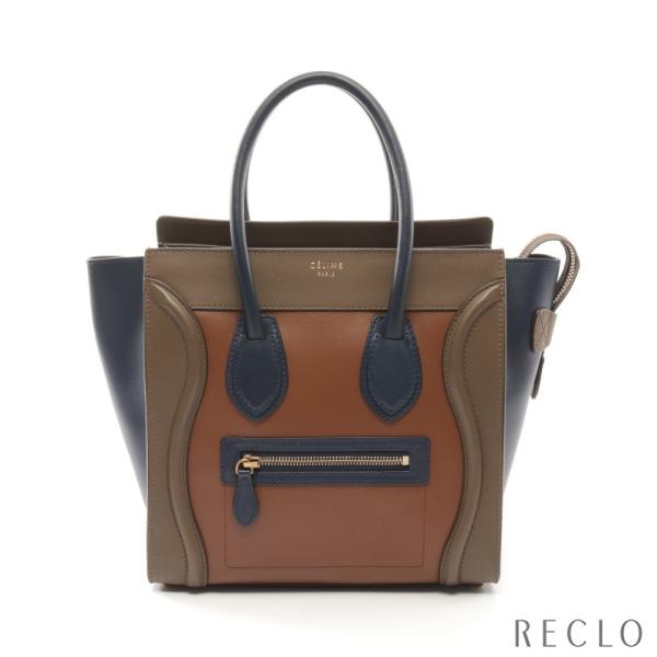セリーヌ CELINE ラゲージ マイクロショッパー ハンドバッグ トートバッグ レザー ブラウン ネイビー グレーブラウン 167793 レディース 中古人気トレンド