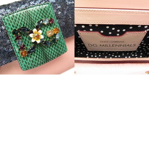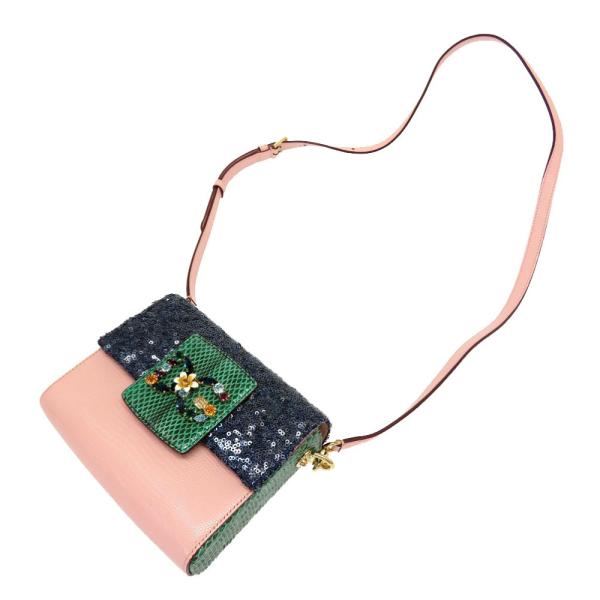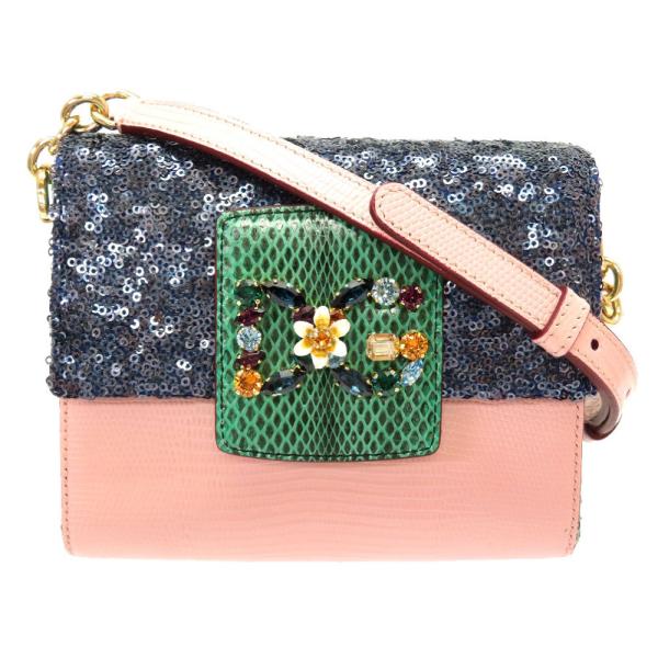 未使用 ドルチェ アンド ガッバーナ ロゴ リザード スパンコール ピンク ブルー BB6391 ショルダーバッグ 0074 DOLCE&GABBANA D&G【ファイナルバーゲン!】