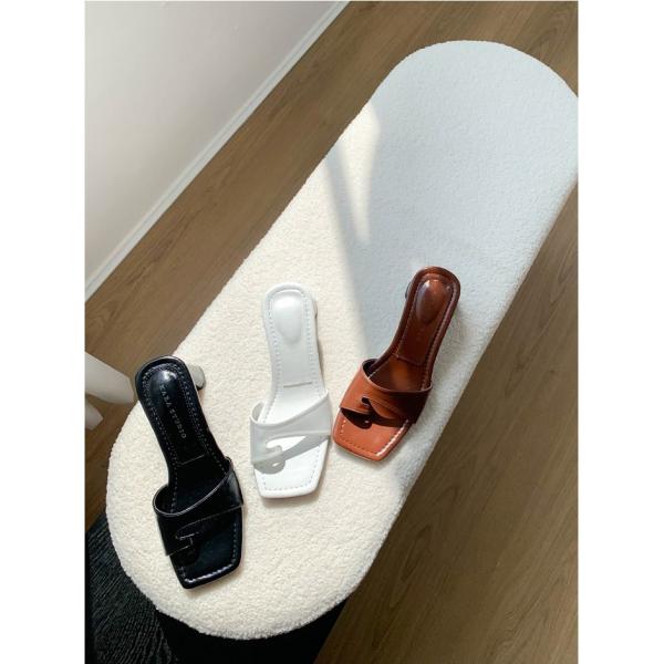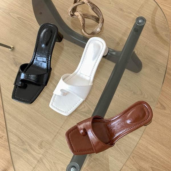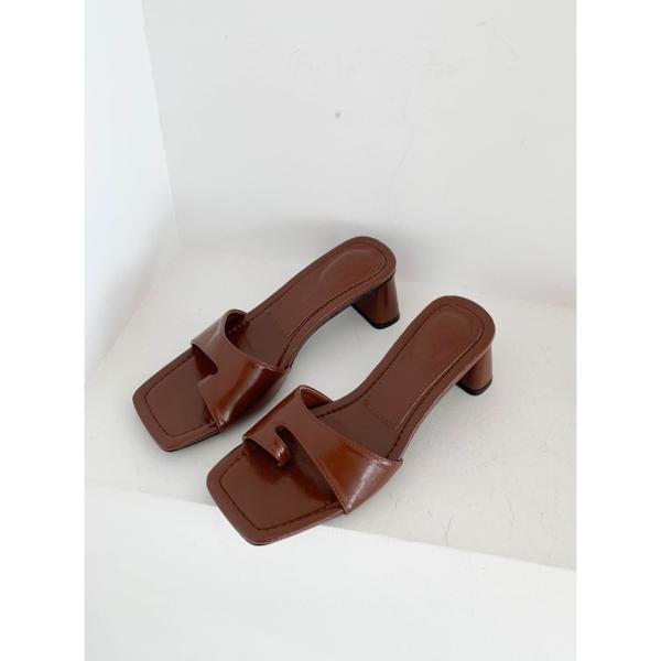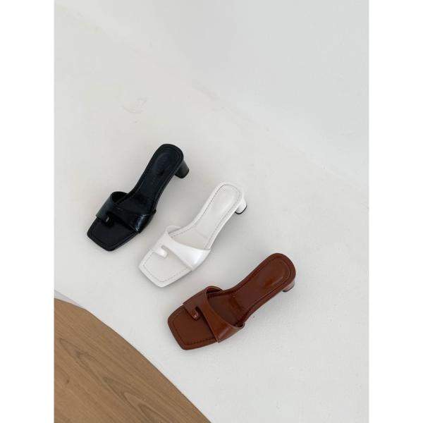 サンダル サムリング 親指リング レディース ミドルヒール チャンキーヒール 太ヒール 黒 茶色 白 ブラック ブラウン ホワイト 歩きやすい 靴 婦人靴 韓国激安ブランド