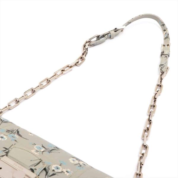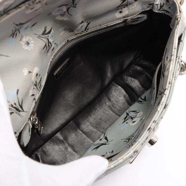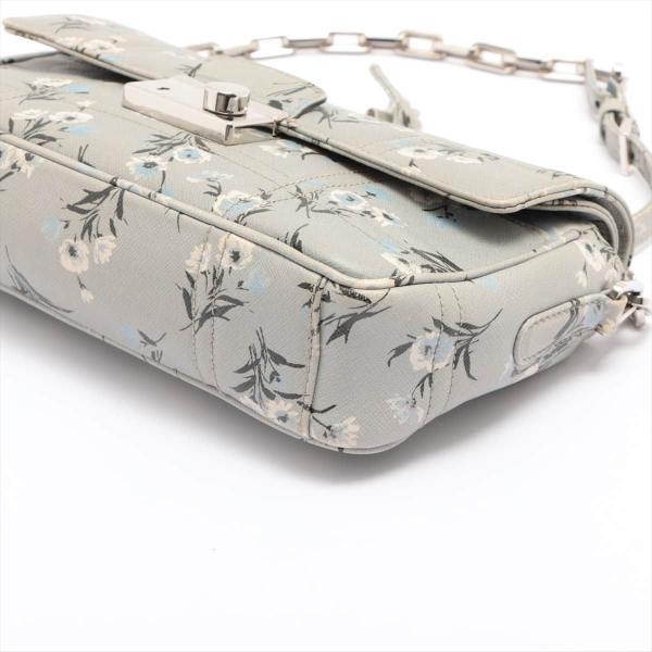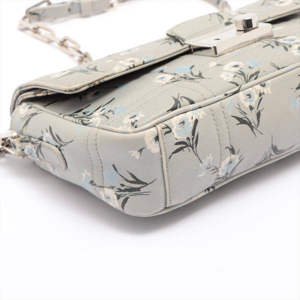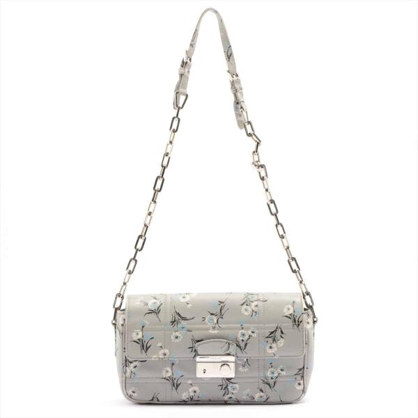 プラダ フラワー レザー チェーンショルダーバッグ グレー BT954P