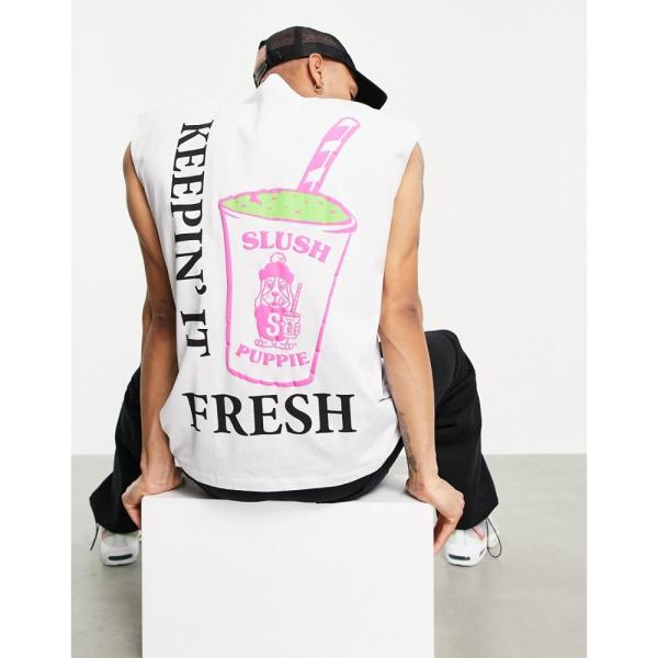 エイソス ASOS DESIGN メンズ ノースリーブ トップス oversized sleeveless t-shirt with print in white ホワイト【取寄品】