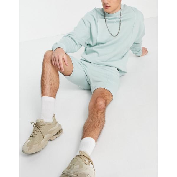 エイソス ASOS DESIGN メンズ ジャージ アウター tracksuit oversized sweashirt & tapered jersey shorts with pintucks in grey【速達メール便送料無料】
