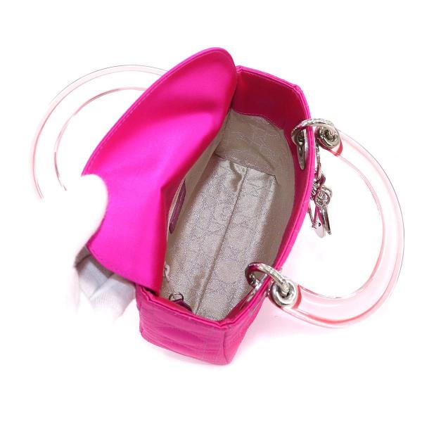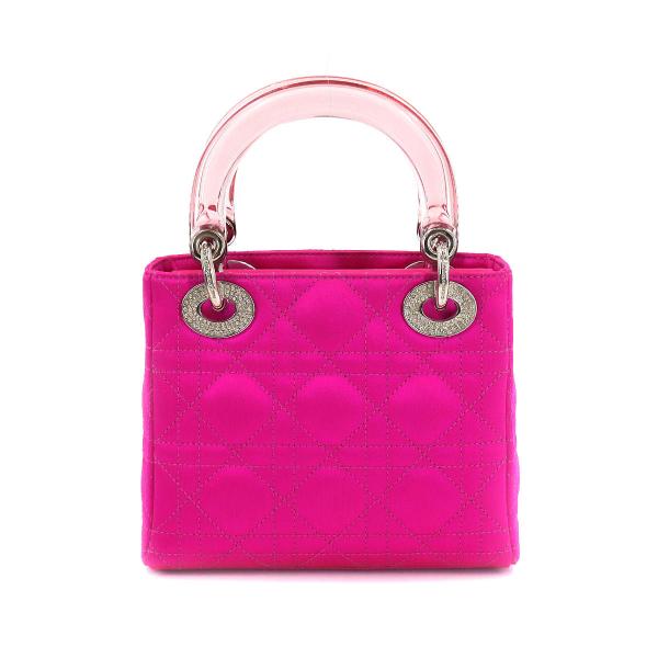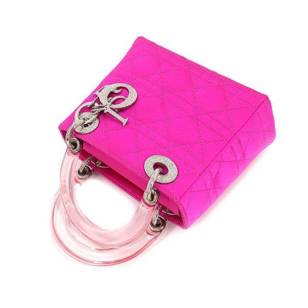 未使用 展示品 クリスチャン ディオール Christian Dior レディディオール ミニ ハンド バッグ ラインストーン サテン ビビットピンク Lady Dior Mini