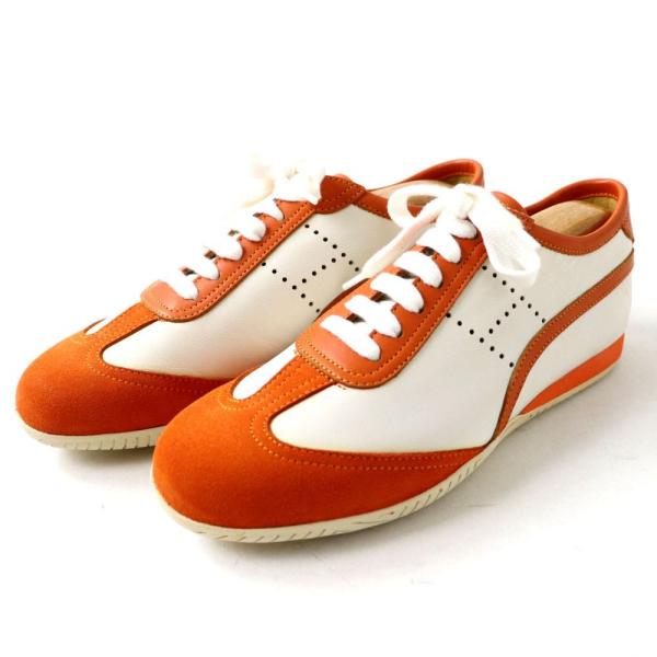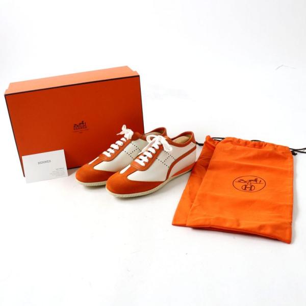 未使用品◎イタリア製 HERMES エルメス レディース エブリン レザー×スウェード スニーカー オレンジ×ホワイト 36 箱・保管袋付き安い