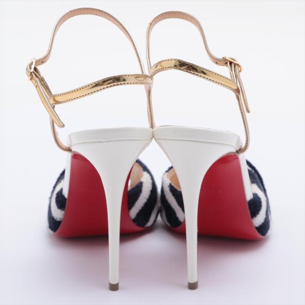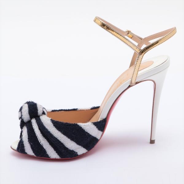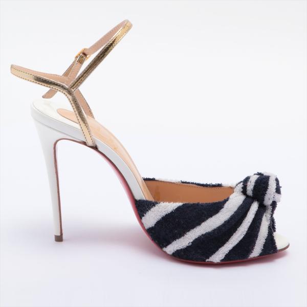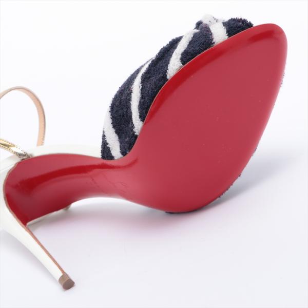クリスチャンルブタン パイル サンダル 37 レディース ホワイト×ネイビー