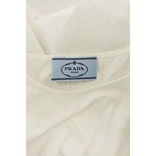 【中古】プラダ PRADA フリルノースリーブカットソー S 白 \/YS ■OS レディース 【ベクトル 古着】【国際ブランド】