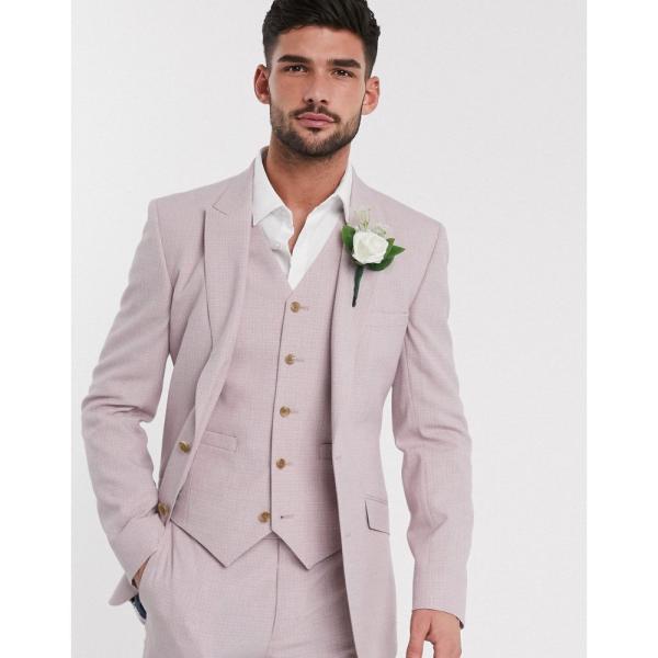 エイソス ASOS DESIGN メンズ スーツ・ジャケット アウター wedding skinny suit jacket in crosshatch in rose pink ピンク短納期対応