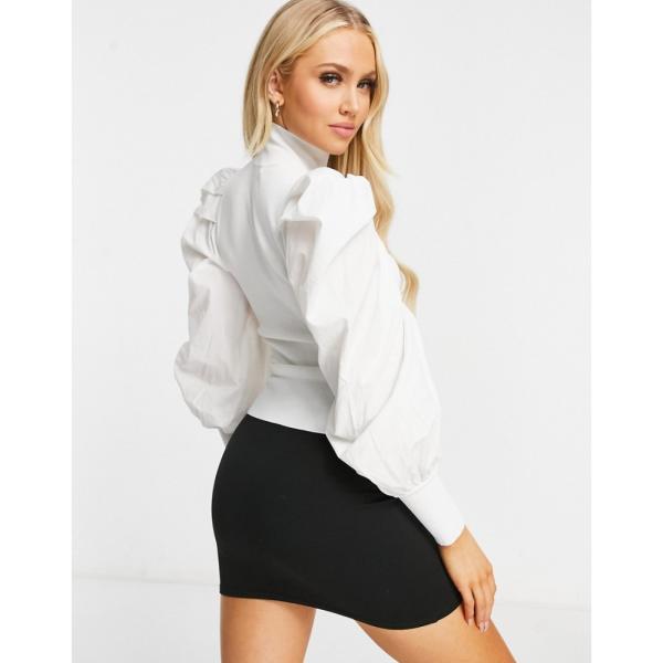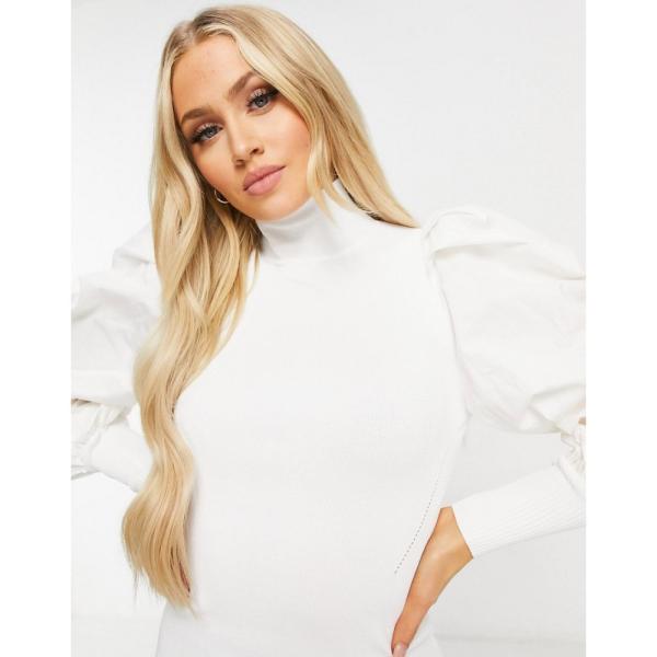 エイソス ASOS DESIGN レディース ニット・セーター トップス jumper with woven sleeves in white ホワイト【目玉商品】