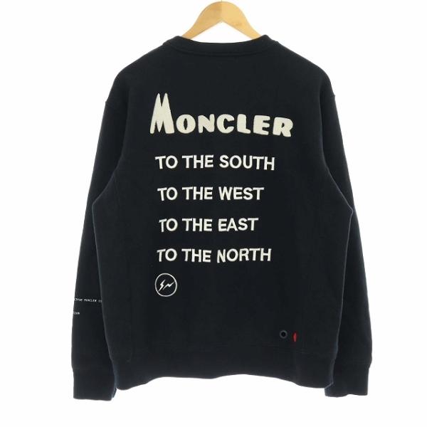 【中古】モンクレール ジーニアス 7 FRAGMENT FUJIWARA HIROSHI MAGLIA GIROCOLLO ロゴ刺繍プルオーバースウェット トレーナー 長袖 L 黒 【ベクトル 古着】超目玉!